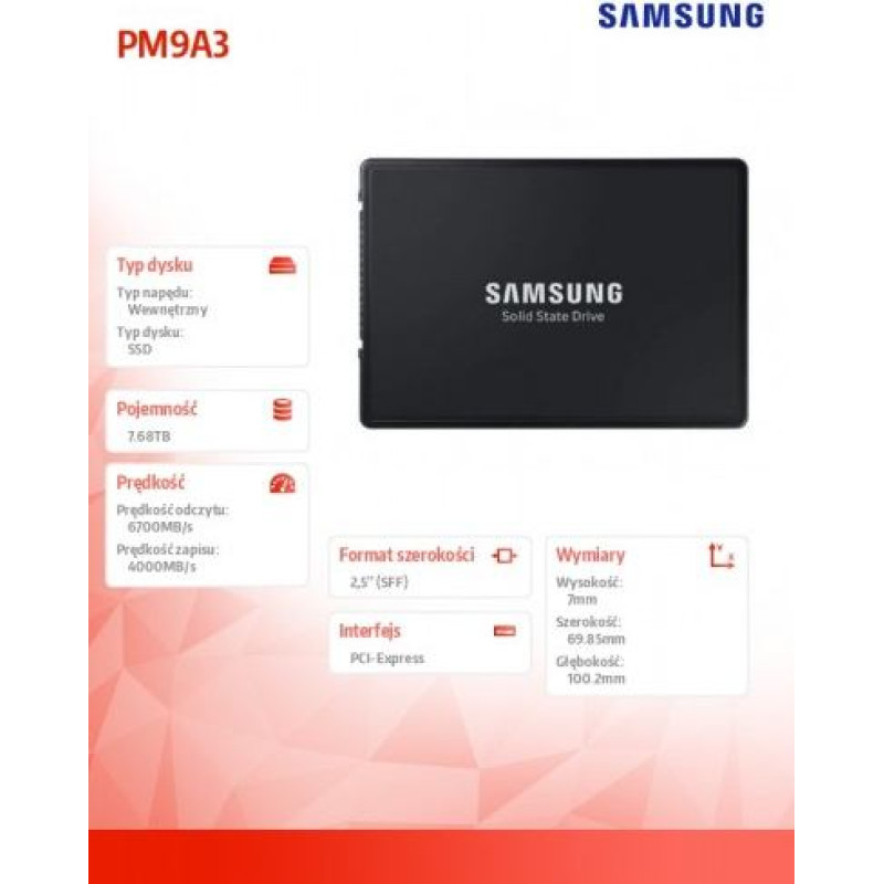 Samsung SSD drive PM9A3 U.2 DCT 7680GB MZQL27T6HBLA-00W07