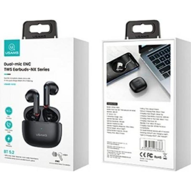 Usams Bluetooth Headphones TW S 5.2 NX10 Dual mic black