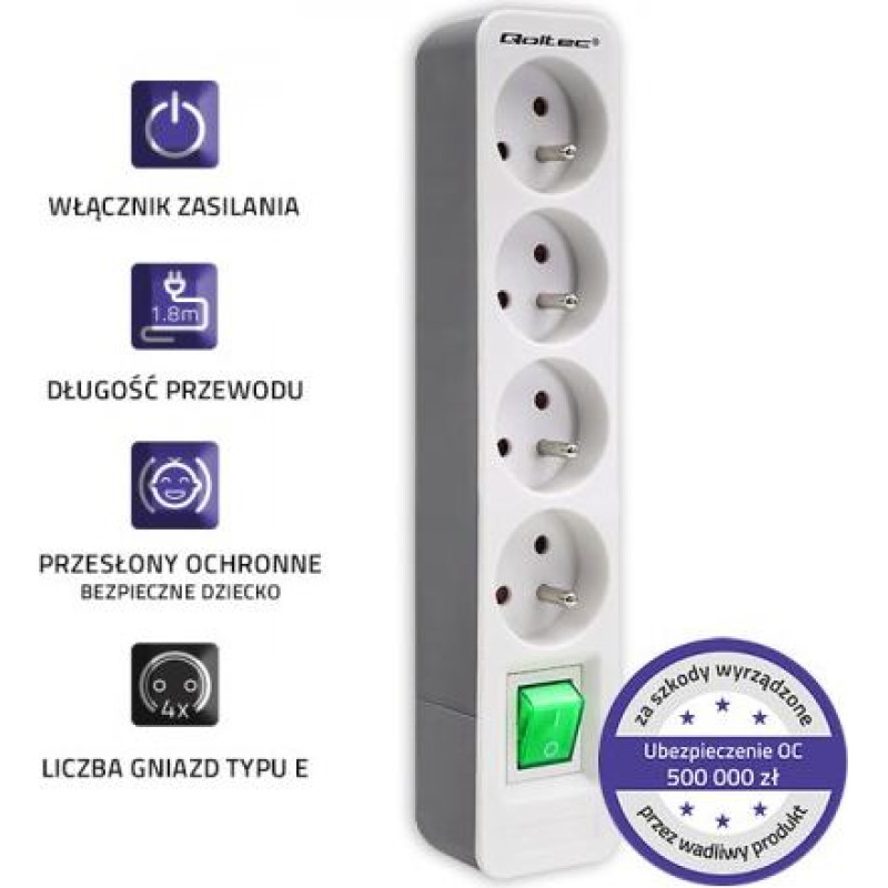 Listwa zasilająca Qoltec 4 gniazda, 1,8 m